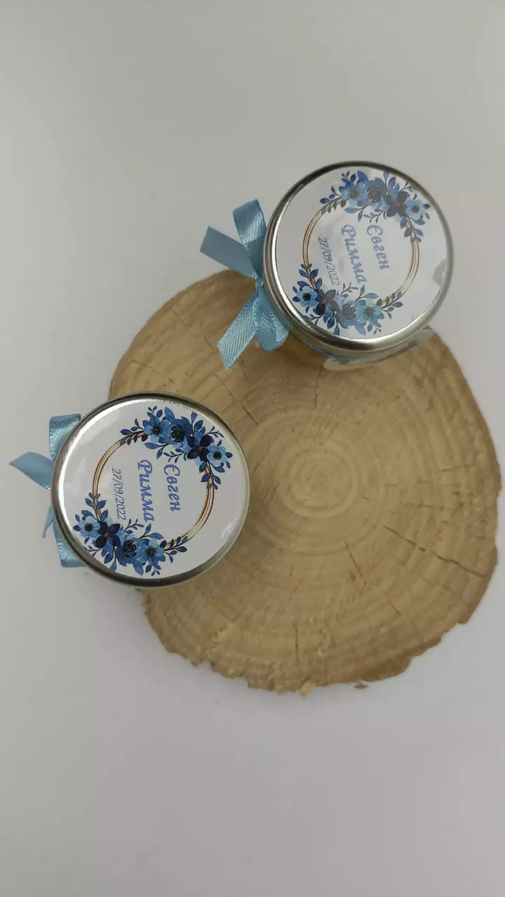 Бонбоньєрки для гостей на блакитне весілля з іменами та датою
