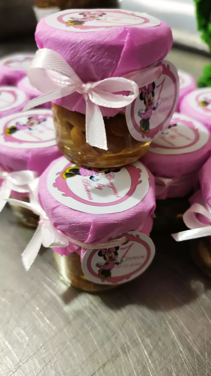 Неймовірно поєднання хрустких горішків та солодкого меду з пасіки, не залишить ваших гостей байдужими. Такі бонбоньєрки подарують приємний смак і залишать у пам'яті спогади про вашу урочистість. Наповнення за вашим смаком мед з горішками (арахіс, мигдаль, фундук, грецький, кешью з вишнею) або ніжний крем мед з натуральними ягодами (полуниця, смородина, цитрус, какао з фундуком, солоними горішками), мед з цукатами. Дизайн та кольорове оформлення можемо підібрати з урахуванням ваших побажань. Також за потреби можемо розмістити логотип вашої компанії для корпоративних замовлень.