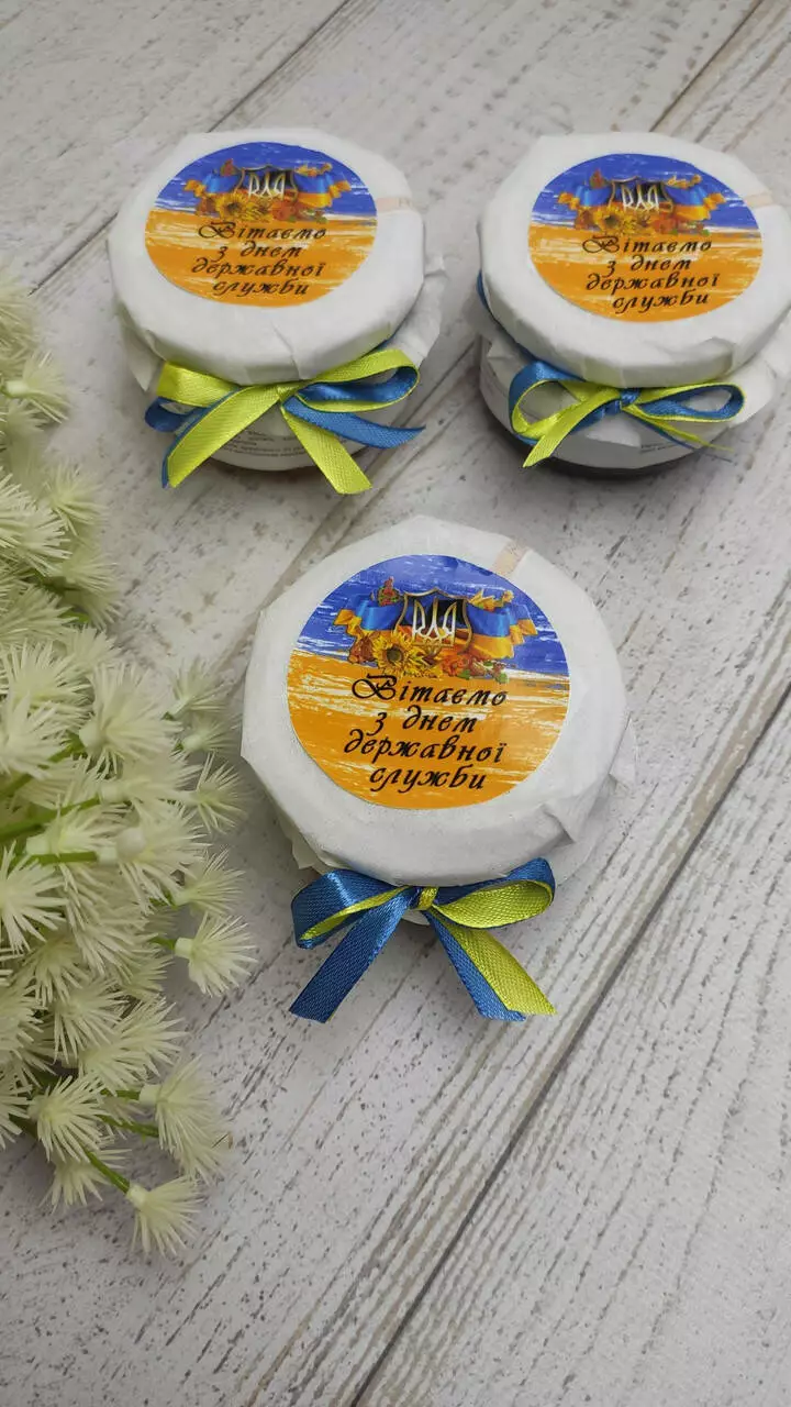Солодкі компліменти для колег також можемо оформити з логотипом вашої компанії. Напис/бажання може бути будь-яким за вашим бажанням. Наповнення, на ваш вибір ніжний крем мед або мед з цільними горішками.