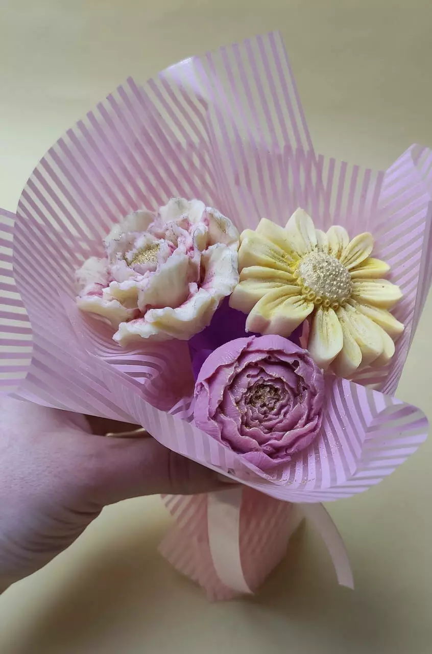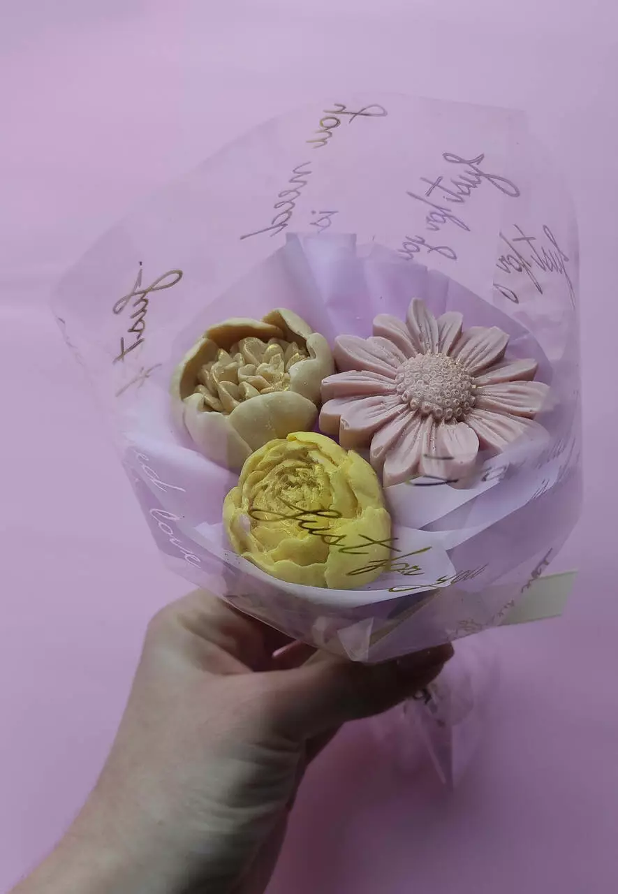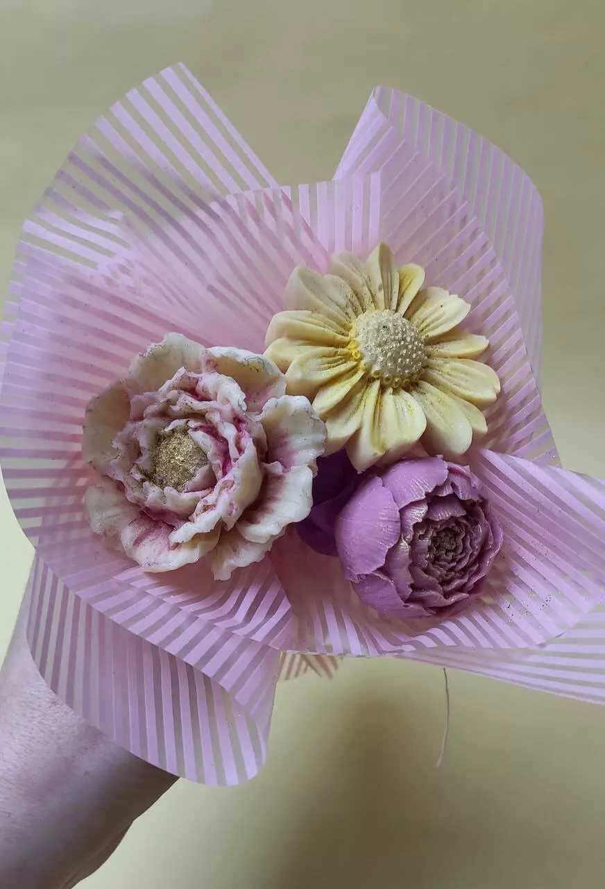 Квітка виготовлена з бельгійського шоколаду та пофарбована концентратом ягід, фруктів, овочів.