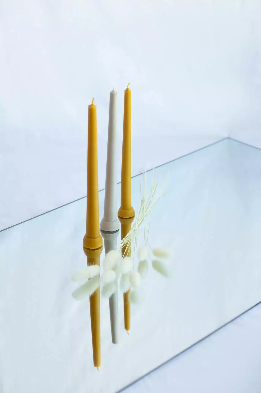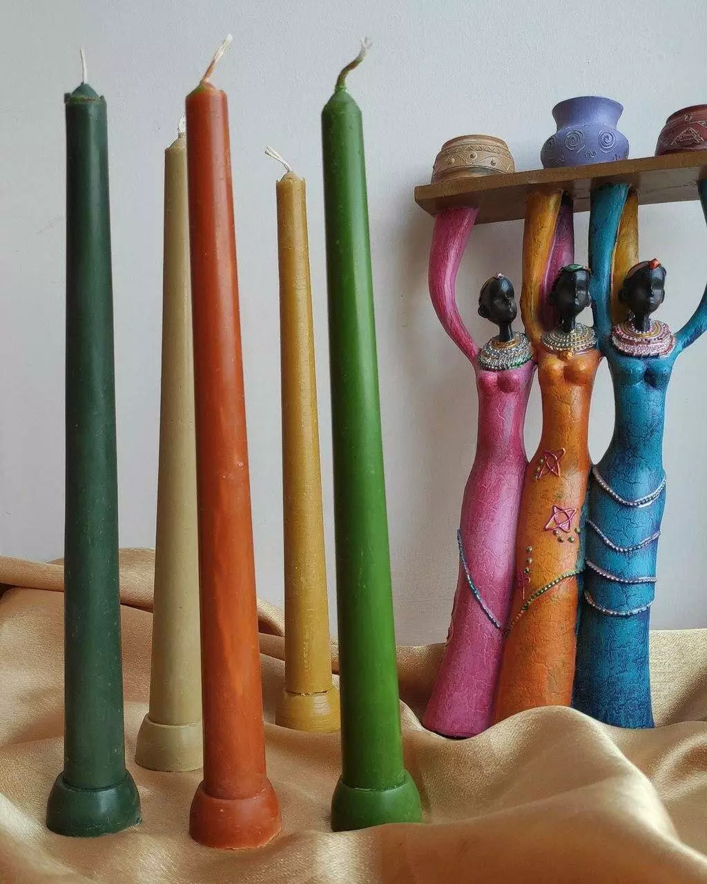 Колір свічки може бути за вашим бажанням жовтий, червоний, чорний, зелений, фіолетовий, молочний, морський хвилі, помаранчевий, рожевий.