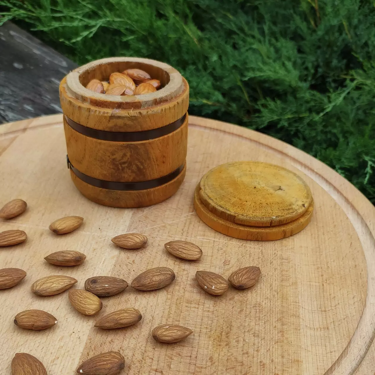 Смачне поєднання меду з мигдалем у бочках із цільного дерева.