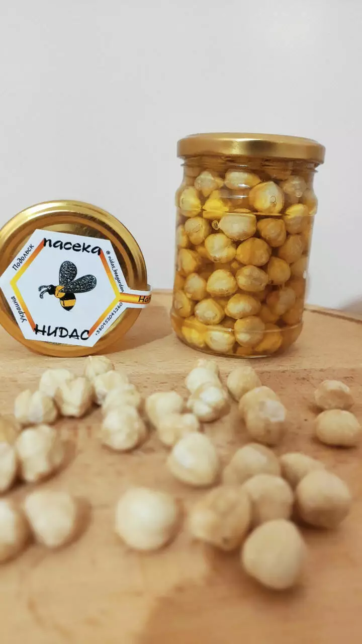 Натуральний мед з фундуком - це дуже смачний і оригінальний подарунок! Хрумкий горішок та ніжний мед з власної пасіки.