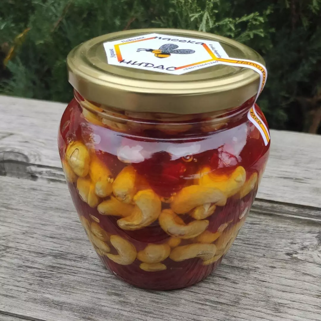 Смачне, корисне і оригінальне поєднання натурального меду, кешью і вишні. Такий десерт буде відмінним подарунком для рідних, близьких або колег.