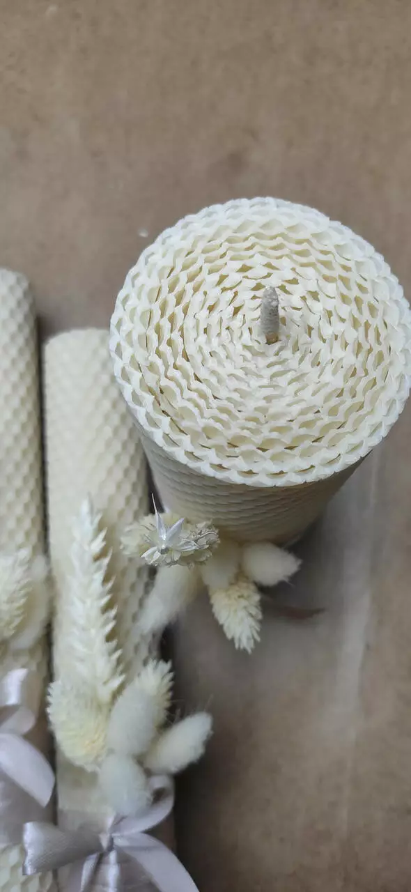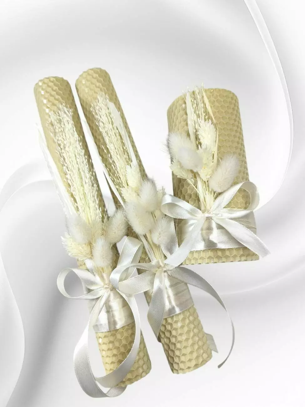 Гарний та стильний набір весільних свічок (3шт) із натурального воску (вощини).