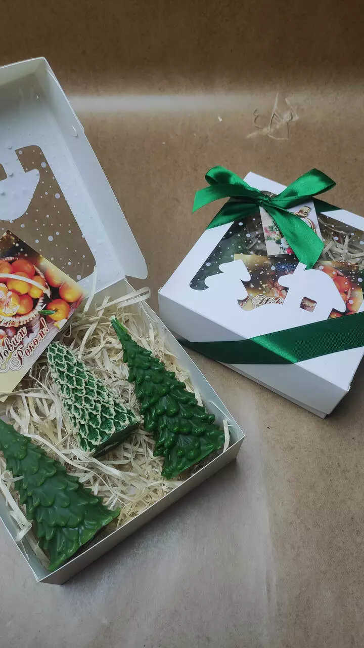 Набір 3х свічок з натурального бджолиного воску ручної роботи. У набір свічки Ялинки різні за формою.