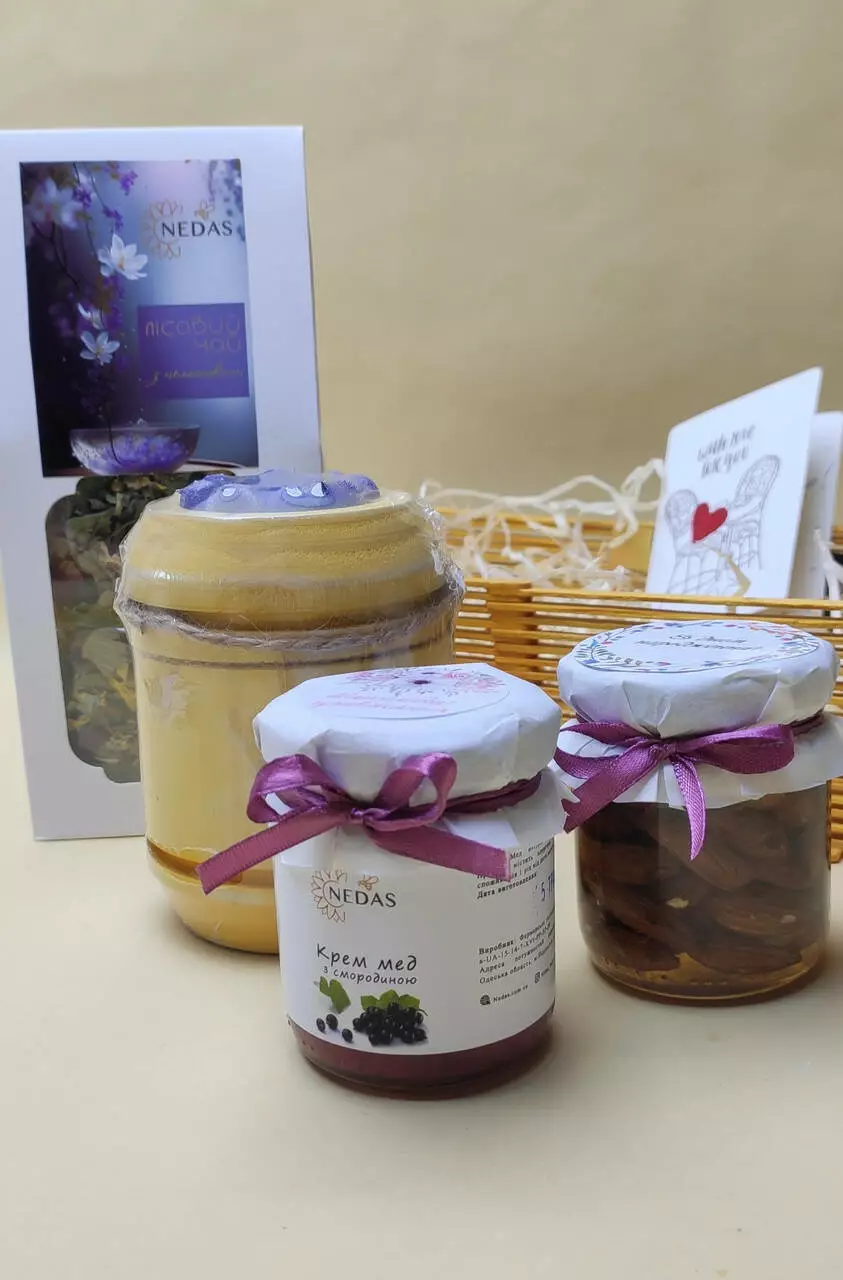 Набір у кошику з дерева, що робить його ще більш приголомшливим.