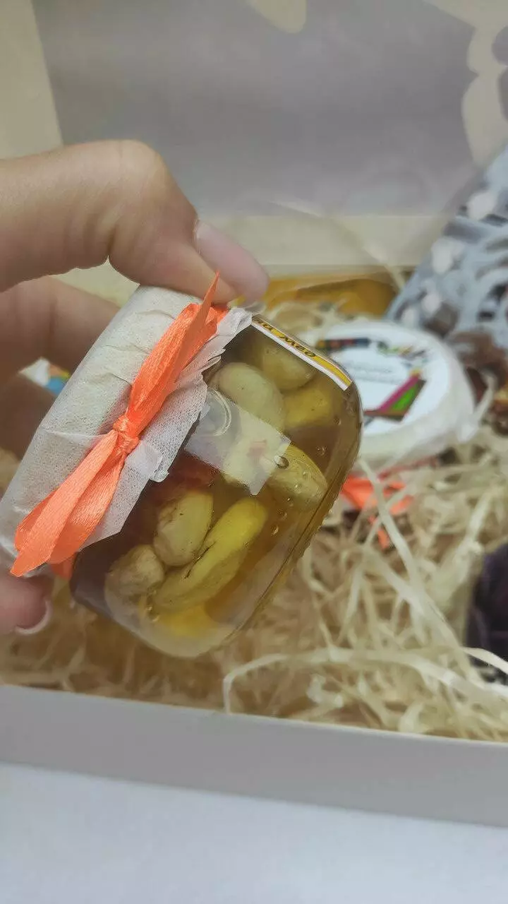 -мед з горіхами (арахіс, мигдаль, фундук, волоський, кешью з вишнею)
