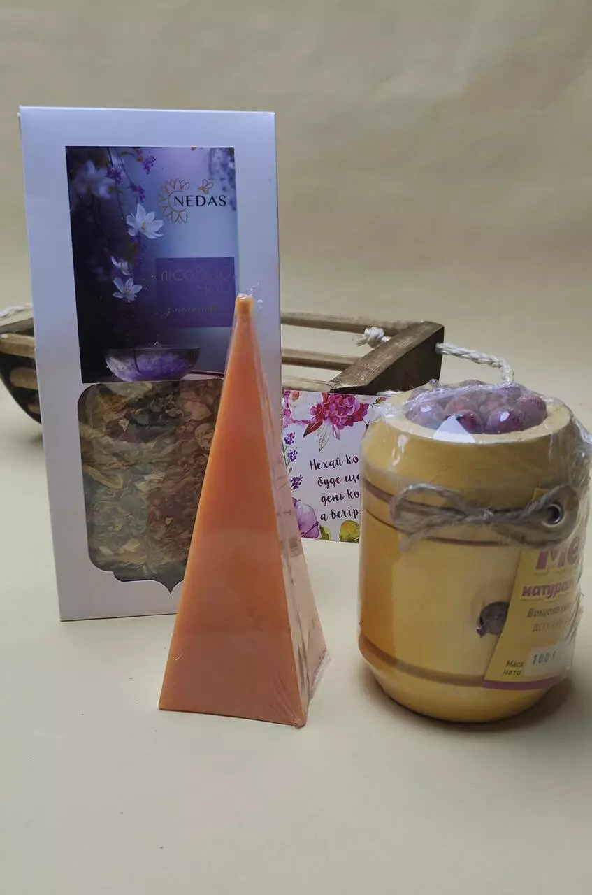- Свічка з натурального бджолиного воску ручної роботи Піраміда.