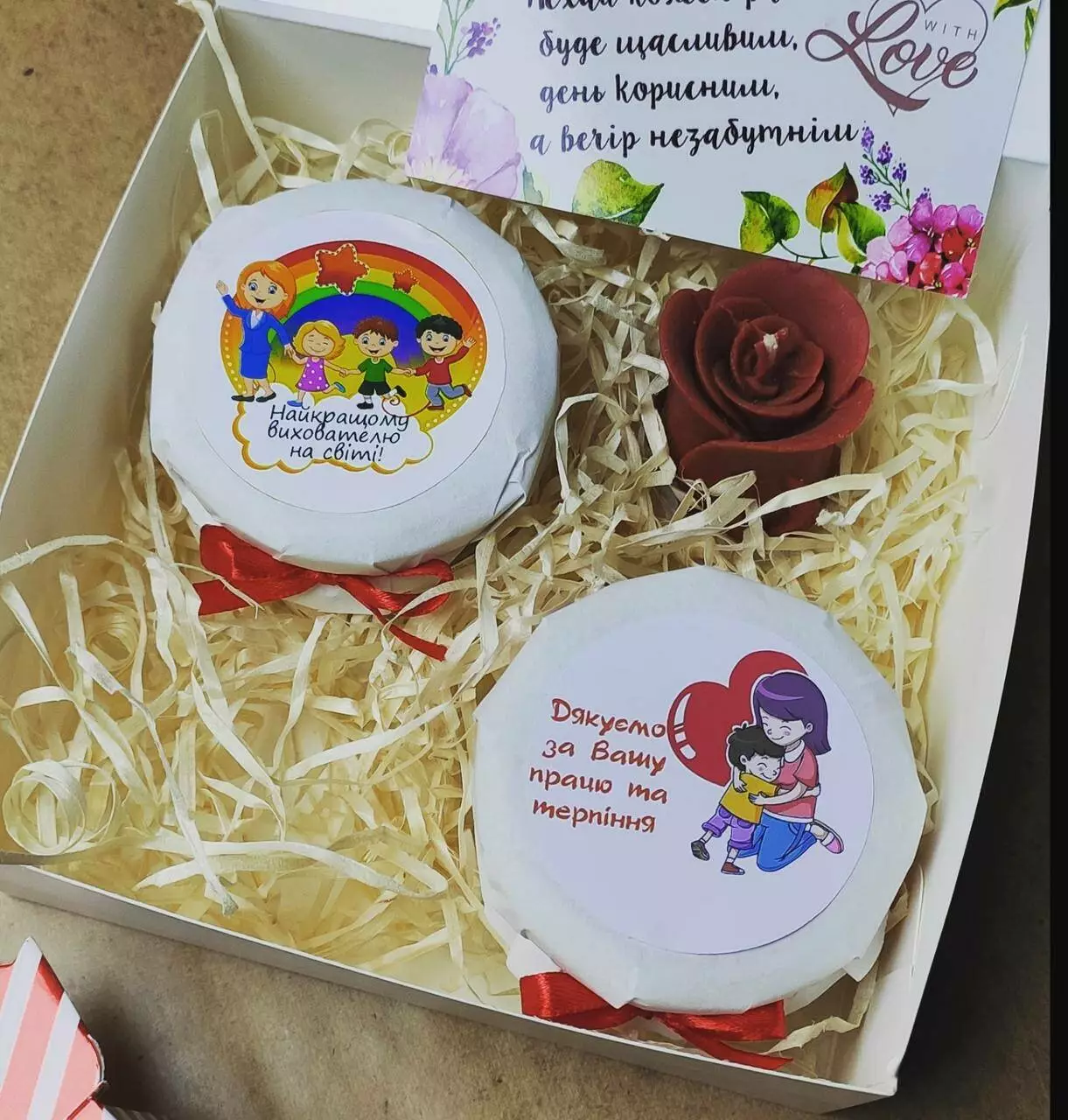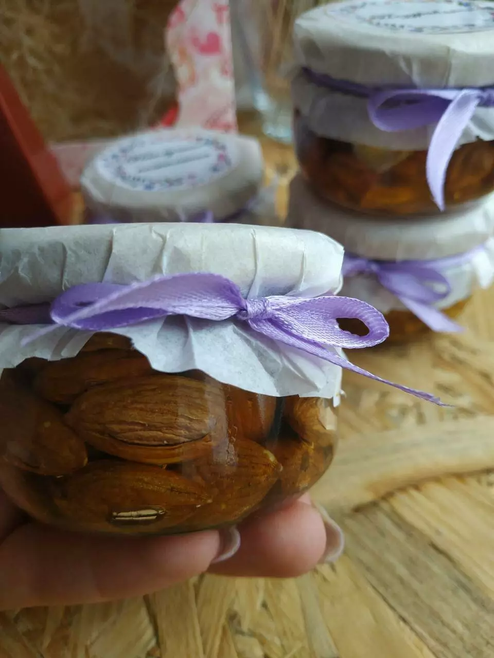 Найсмачніший мед з цілісним горішком (арахіс, мигдаль, фундук, грецький, кешью з вишнею), ніжний крем мед з ягодами (журавлина, полуниця, чорниця, смородина, цитрус, солоний арахіс, какао з фундуком) мед з цукатами. У наборі 2 баночки по 140г