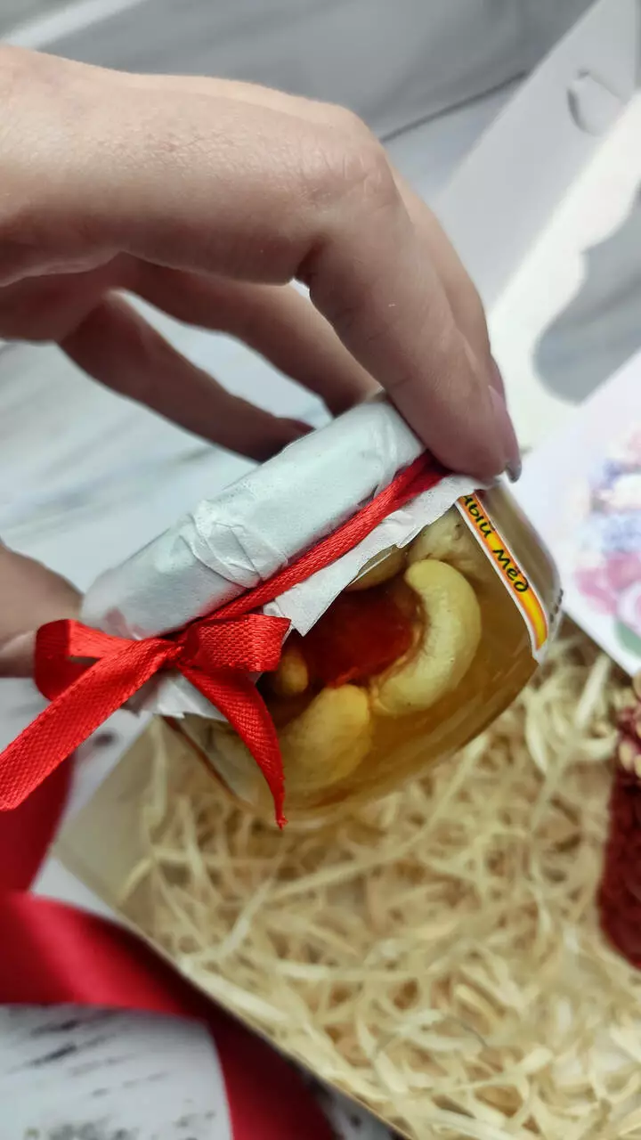 • Мед з горішками (арахіс, мигдаль, фундук, волоський, кеш'ю з вишнею, кеш'ю з журавлиною)