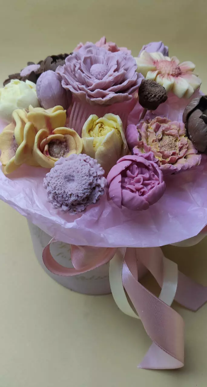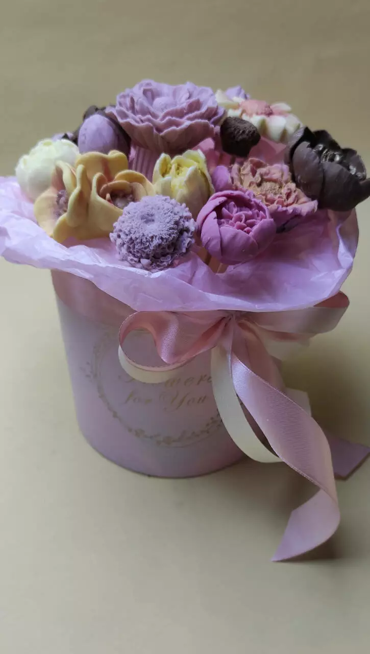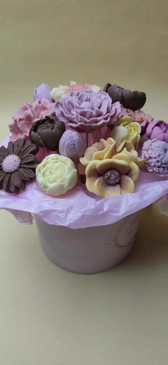 Квіти виготовлені з бельгійського преміального шоколаду та пофарбовані концентратом ягід, фруктів, овочів.