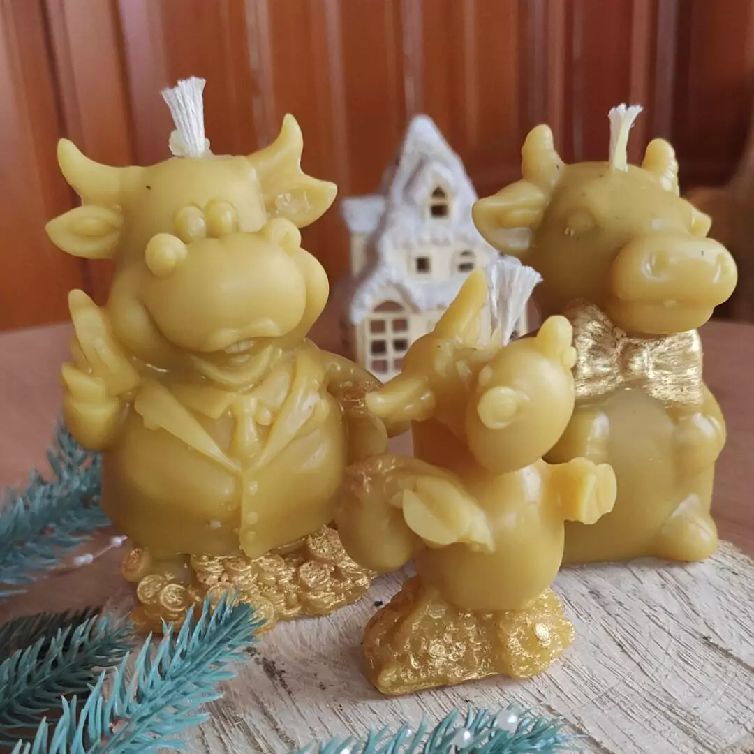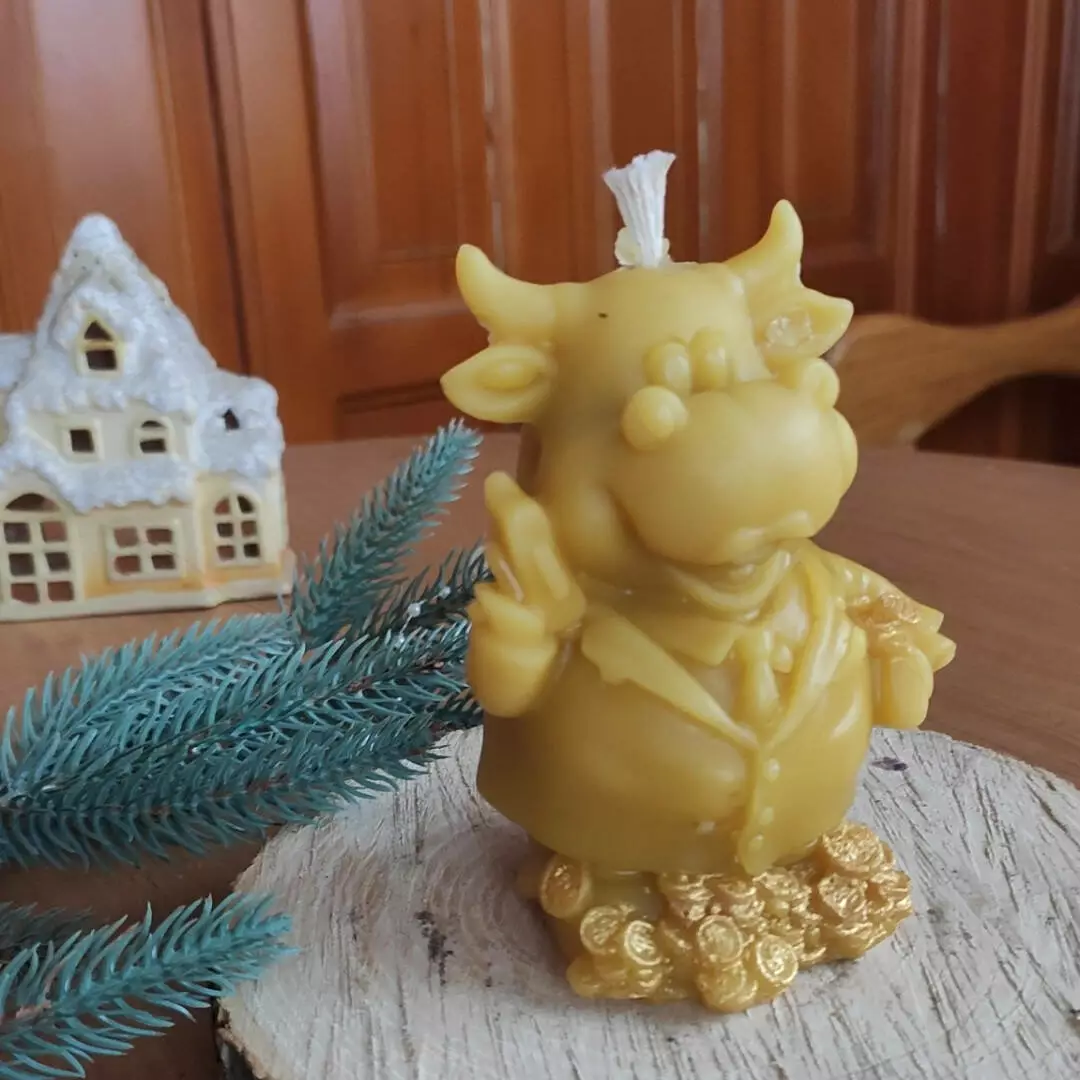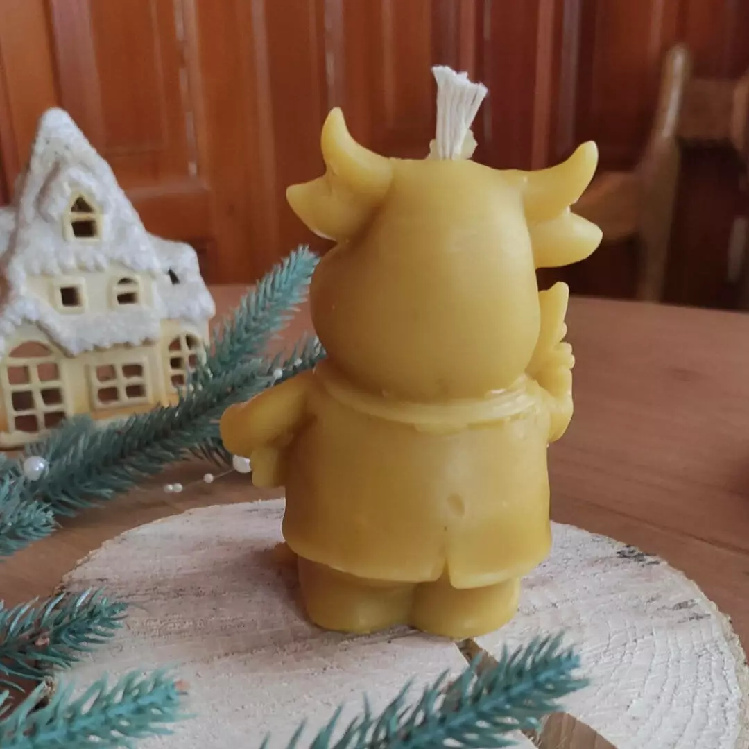 Свічка з бджолиного воску ручної роботи Бик символ 2021 року.
