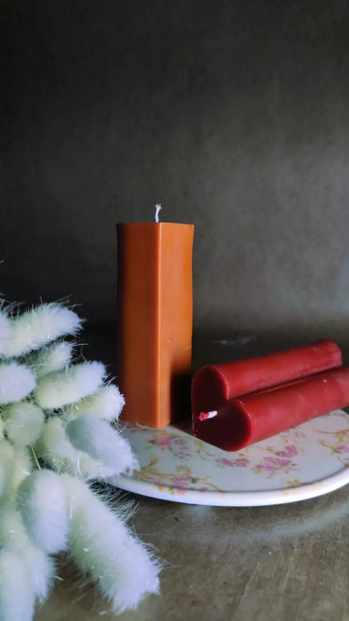 Свічка виготовлена з бджолиного воску в якості барвника використовуємо спеціалізований свічковий барвник, який не має стороннього запаху і не виділяє шкідливих речовин при горінні.
