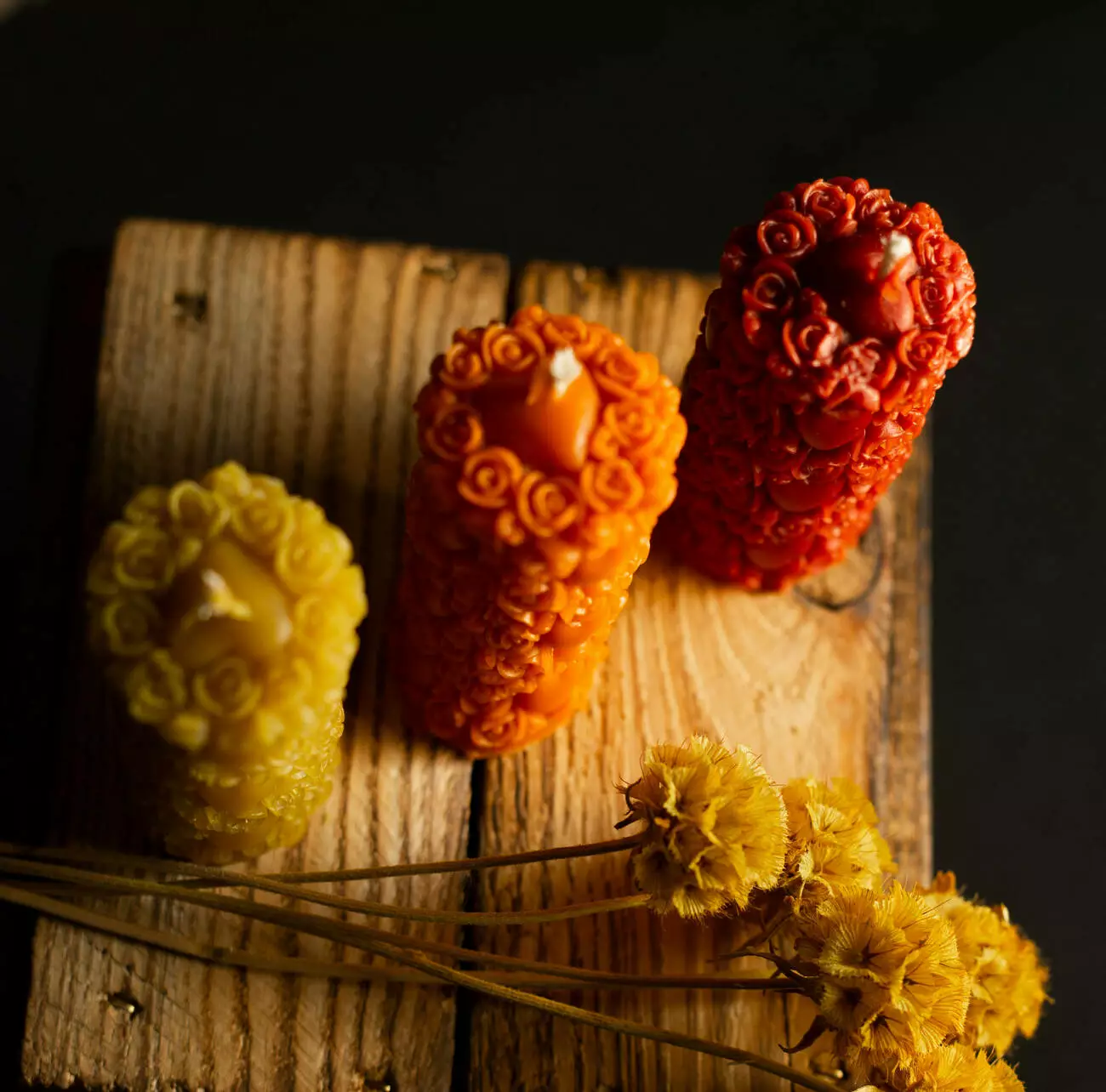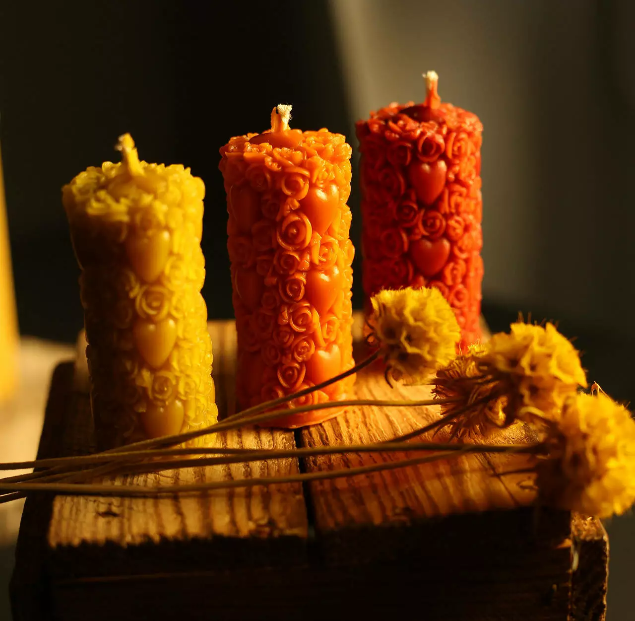 Свічка з бджолиного воску ручної роботи Троянди і серце