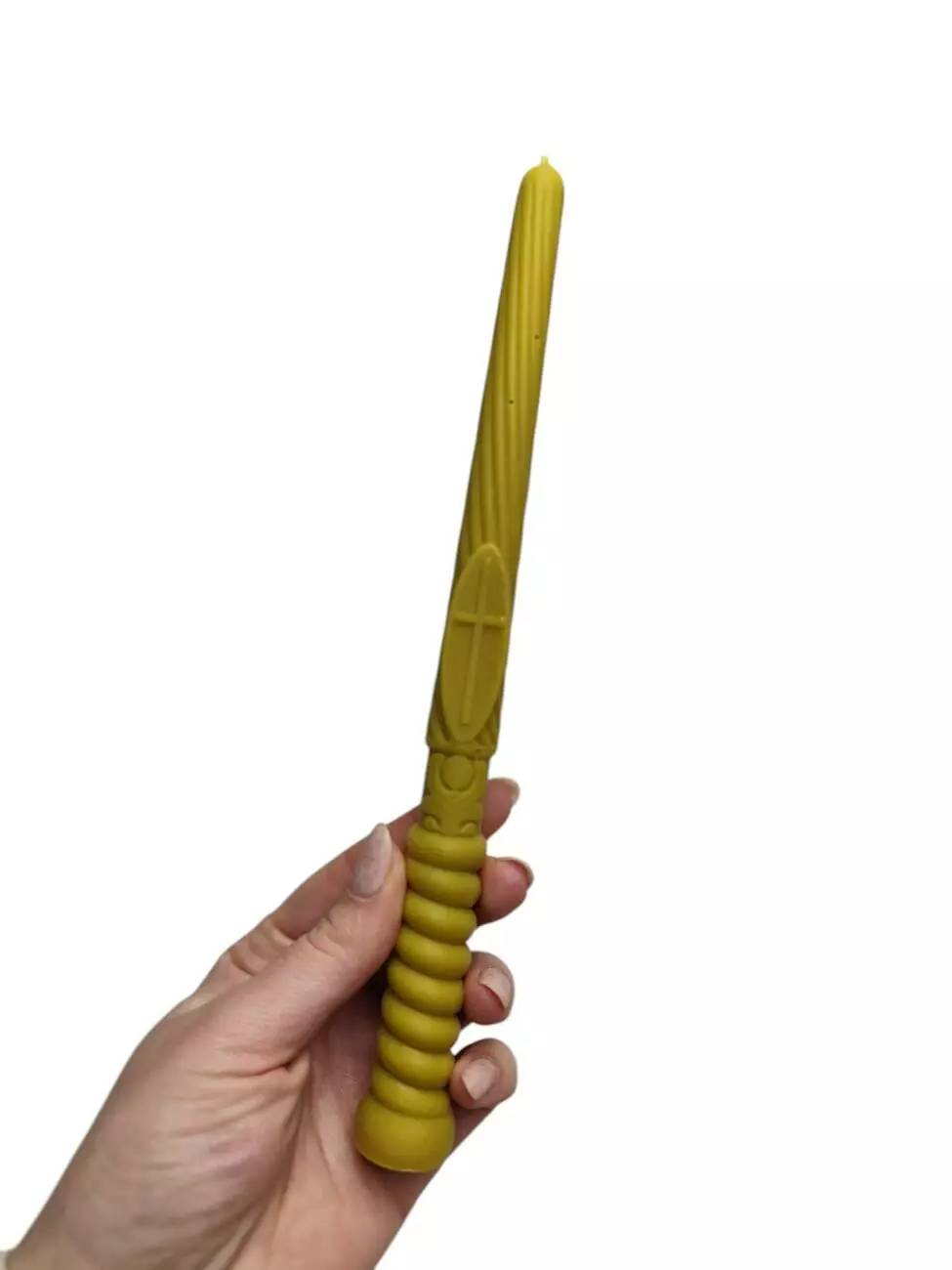 Колір свічки може бути за вашим бажанням жовтий, червоний, чорний, зелений, фіолетовий, молочний, морський хвилі, помаранчевий, рожевий.