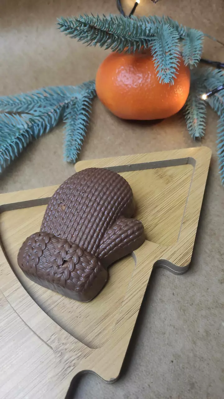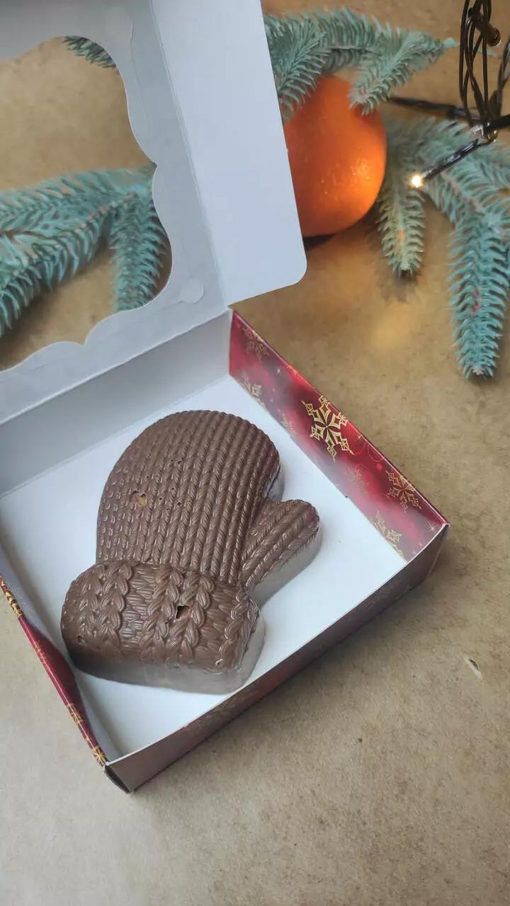 Рукавичка упакована в подарунковій коробочці, доповнена стрічкою та биркою.