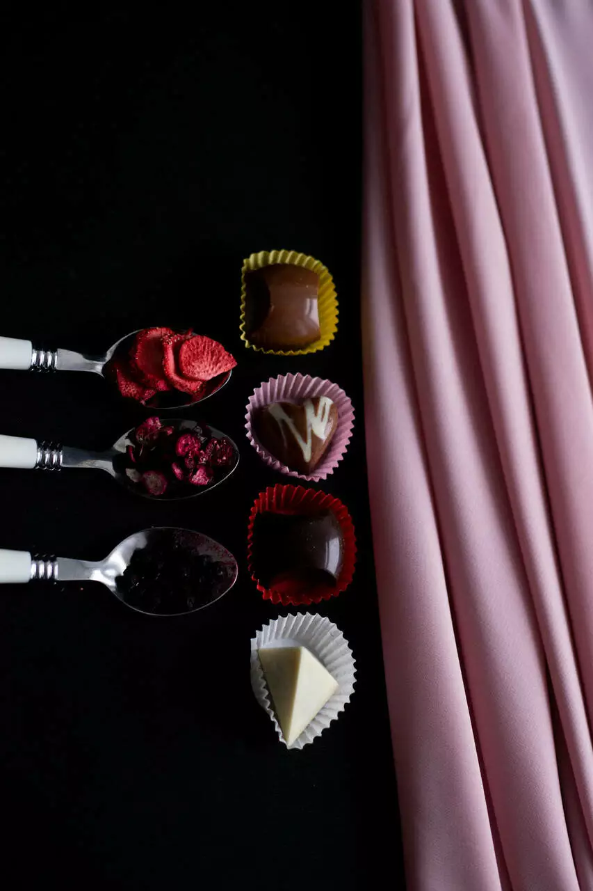 Дуже оригінальна і смачна цукерка з натурального бельгійського шоколаду з цілісними горіхами, що хрумтять, ніжним ягідним крем медом, сублімованими ягодами.