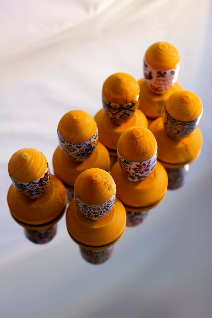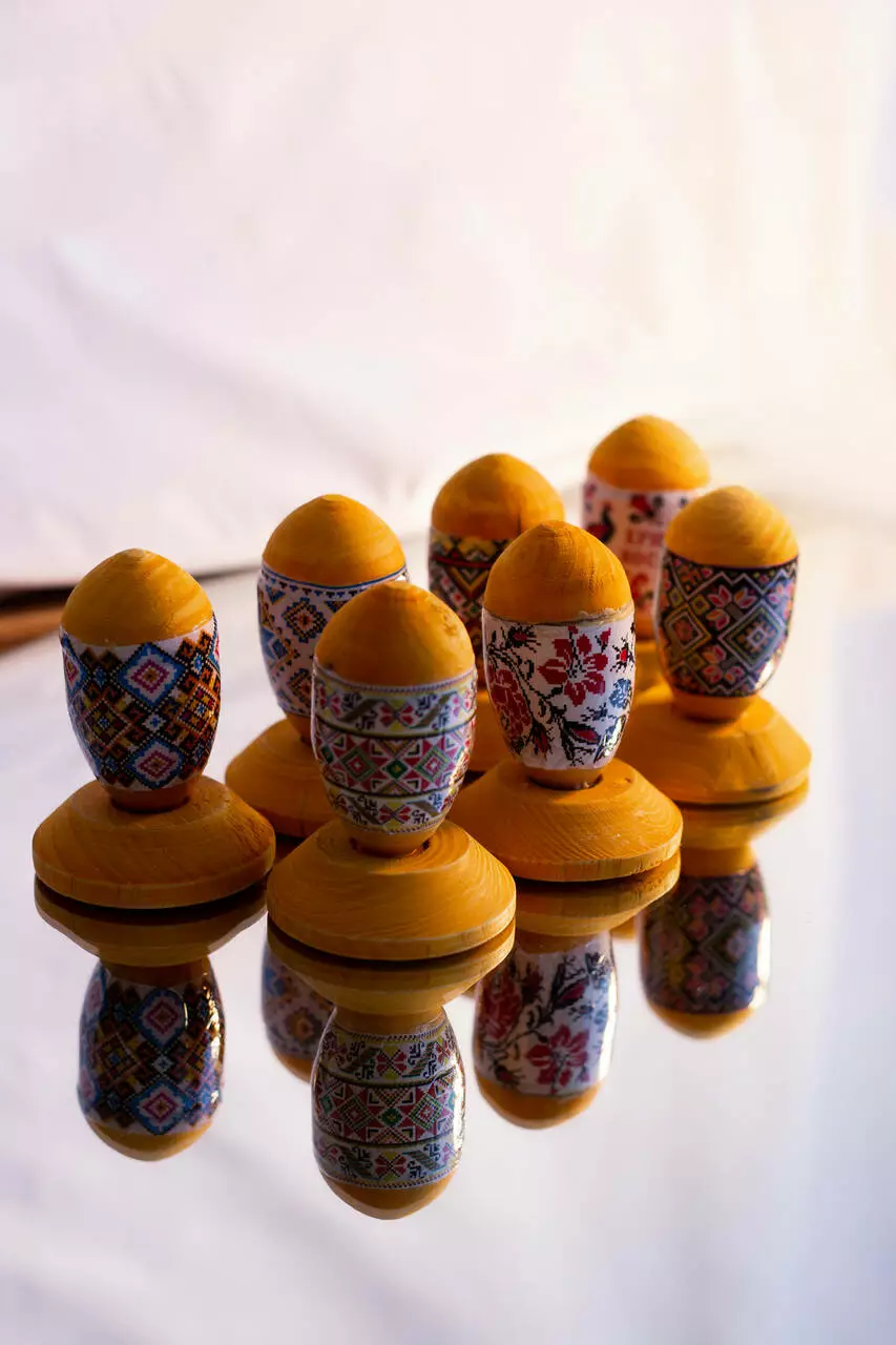 Пасхальне яйце зроблене з цільного дерева, всередині покрита тонким шаром бджолиного воску і наповнений смачним і запашним медом з власної пасіки. Яйце декороване янголятком.