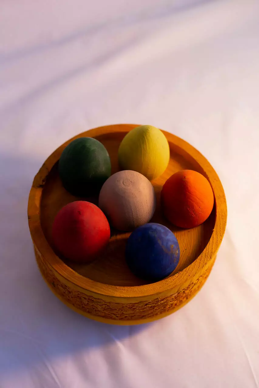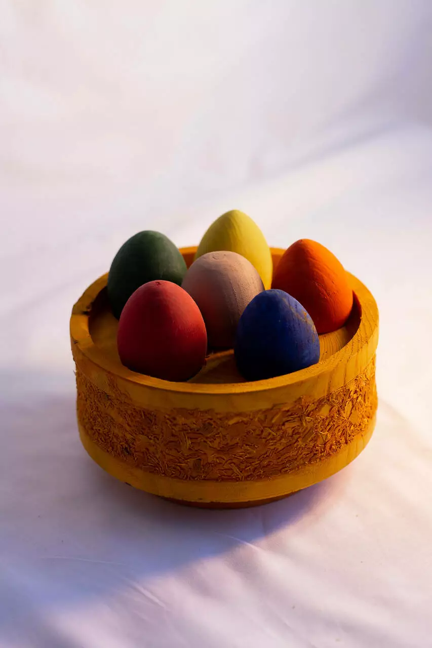 Кошик декорований фарбованими дерев'яними яйцями. Для того, щоб відкрити і з'їсти ласощі необхідно підчепити кожне яйце вгору.