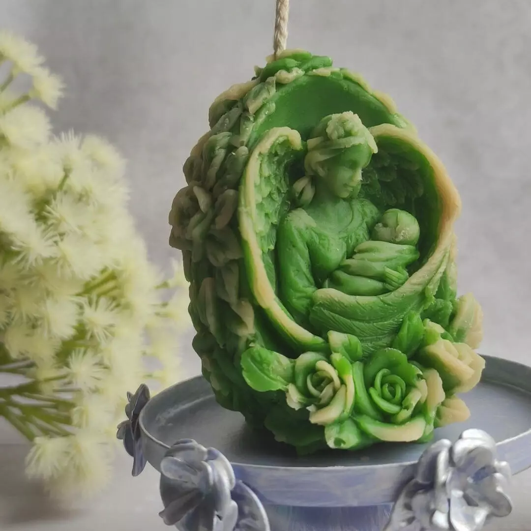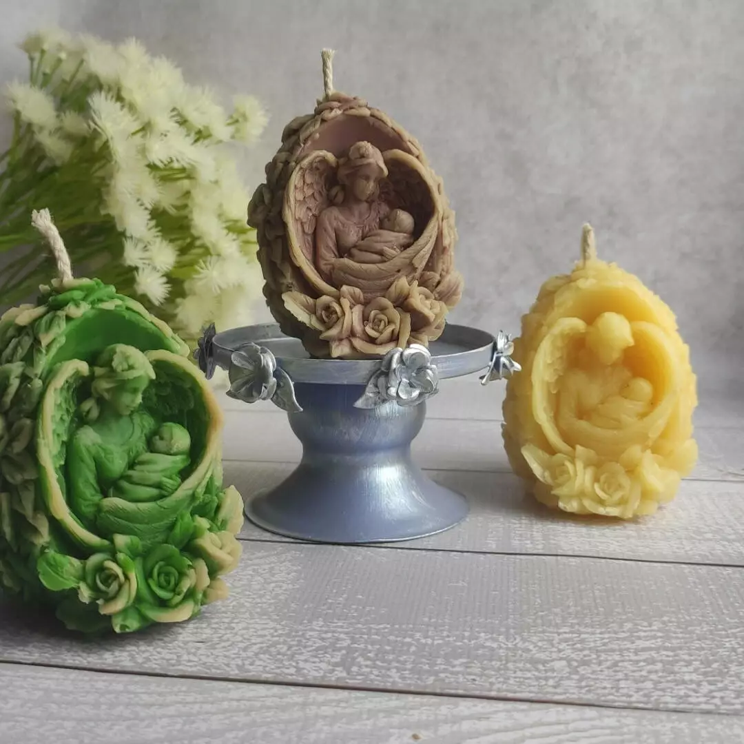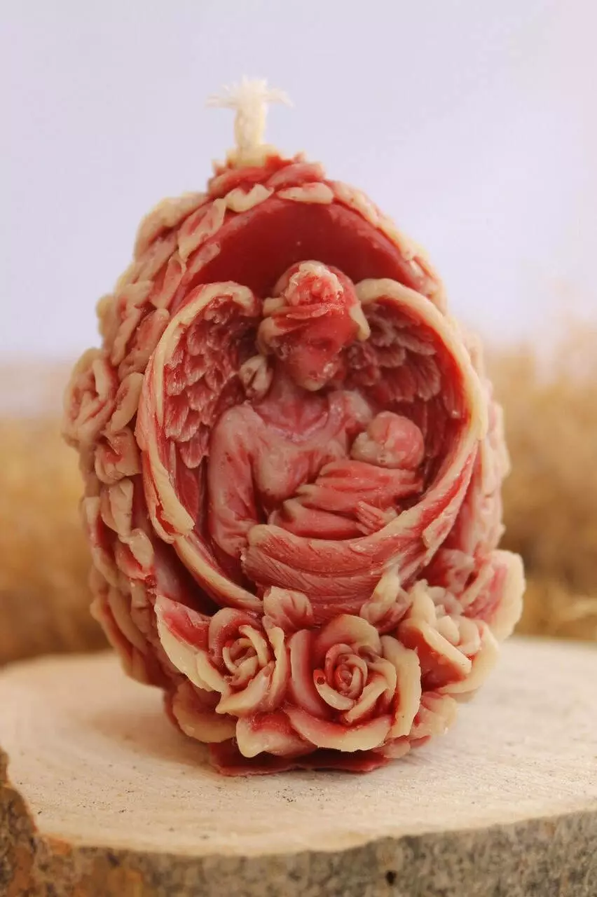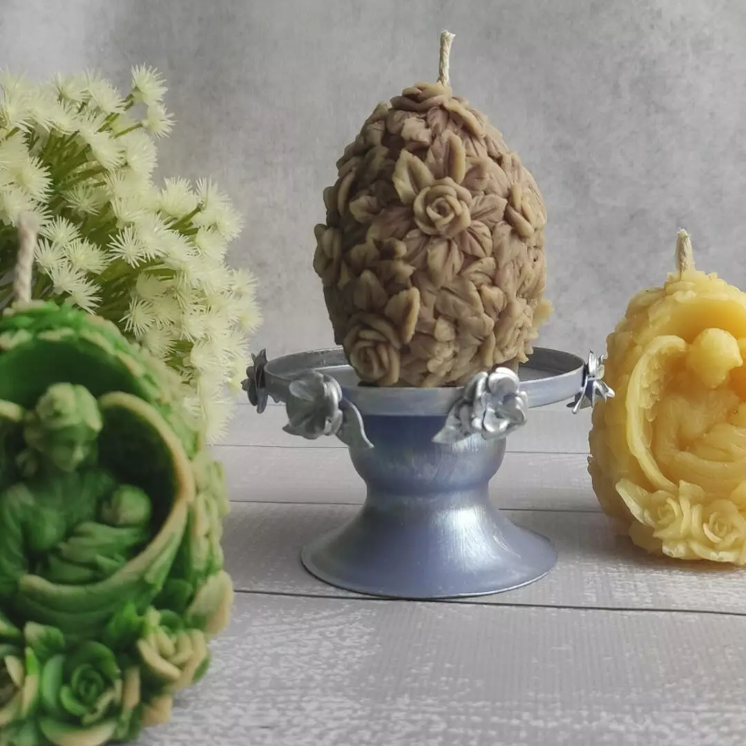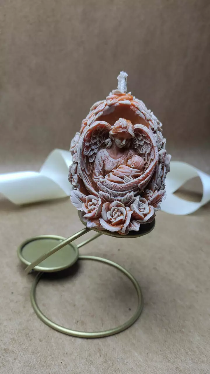 Об'ємна свічка, із зворотного боку квіти, на передньому плані обійми.