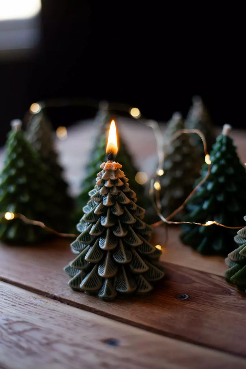 Свічка під час горіння має ніжний медовий аромат. Буде красивим доповненням до вашого новорічного декору.