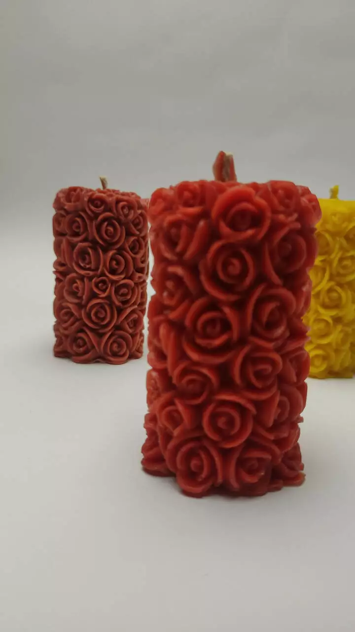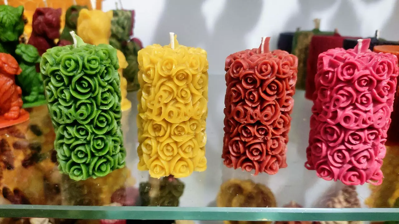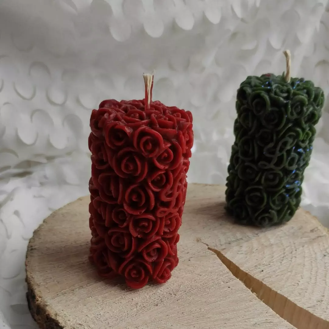 Свічка зроблена з бджолиного воску, як барвник використовуємо спеціалізований свічковий барвник, який не має стороннього запаху і не виділяє шкідливих речовин при горінні.