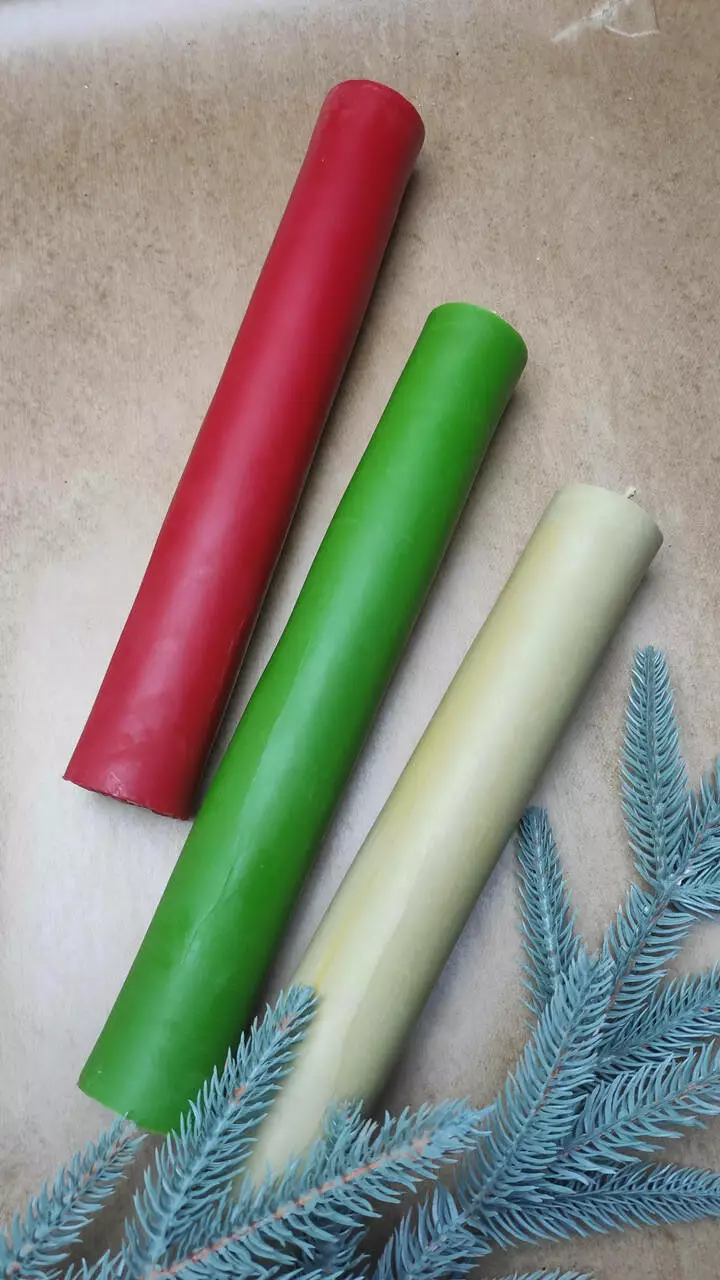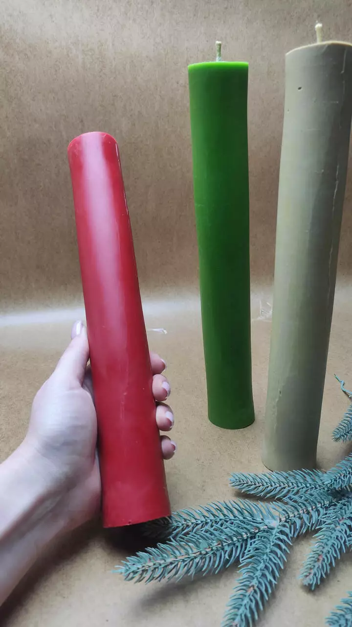 Свічка доступна до замовлення в червоному, жовтому, молочному, зеленому, жовтому, оранжевому та фіолетовому кольорі.