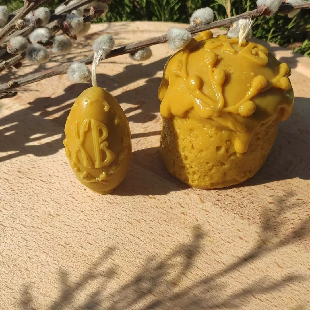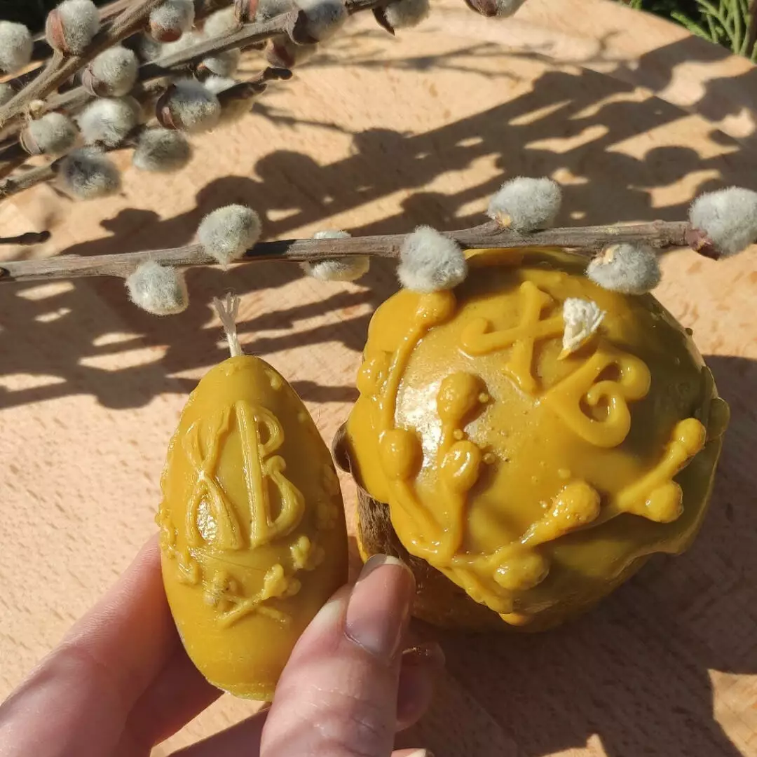 Свічка з бджолиного воску ручної роботи буде оригінальним доповненням великоднього кошику та святково столу.