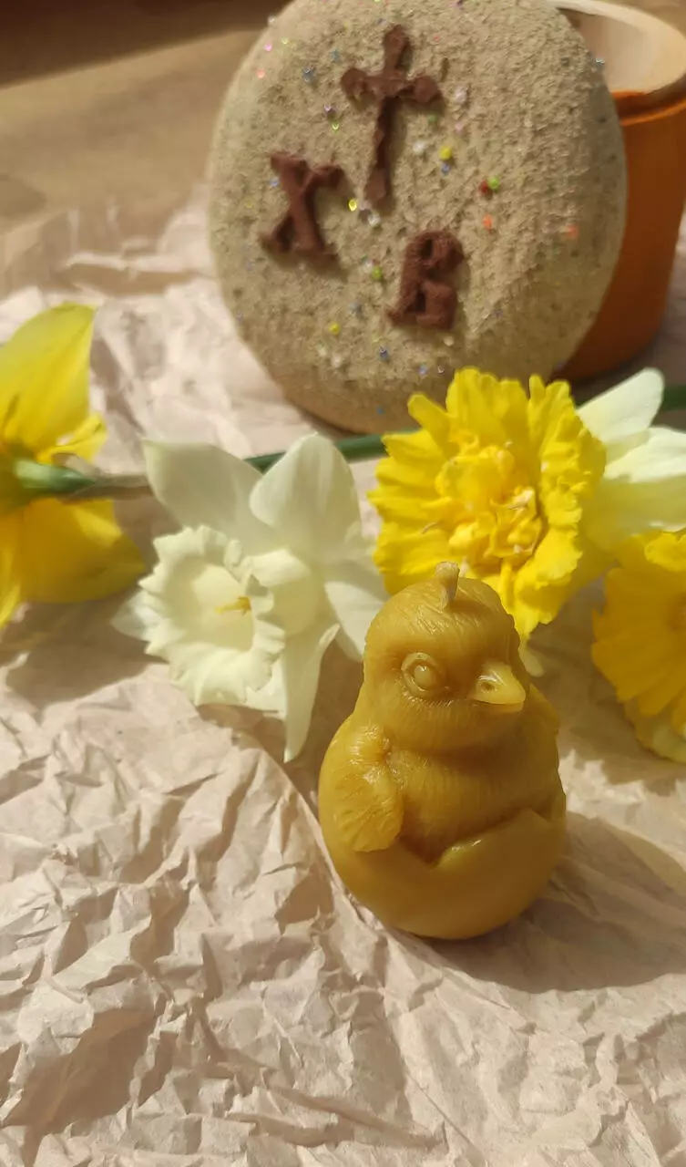 Свічка з бджолиного воску ручної роботи Курча в яйці.
