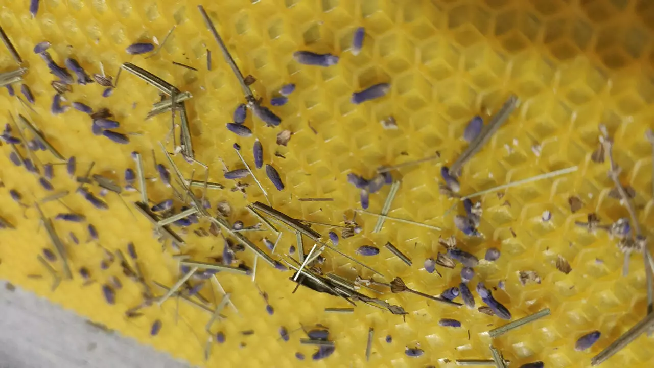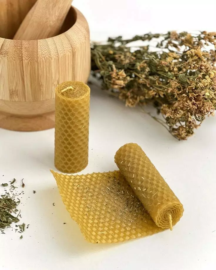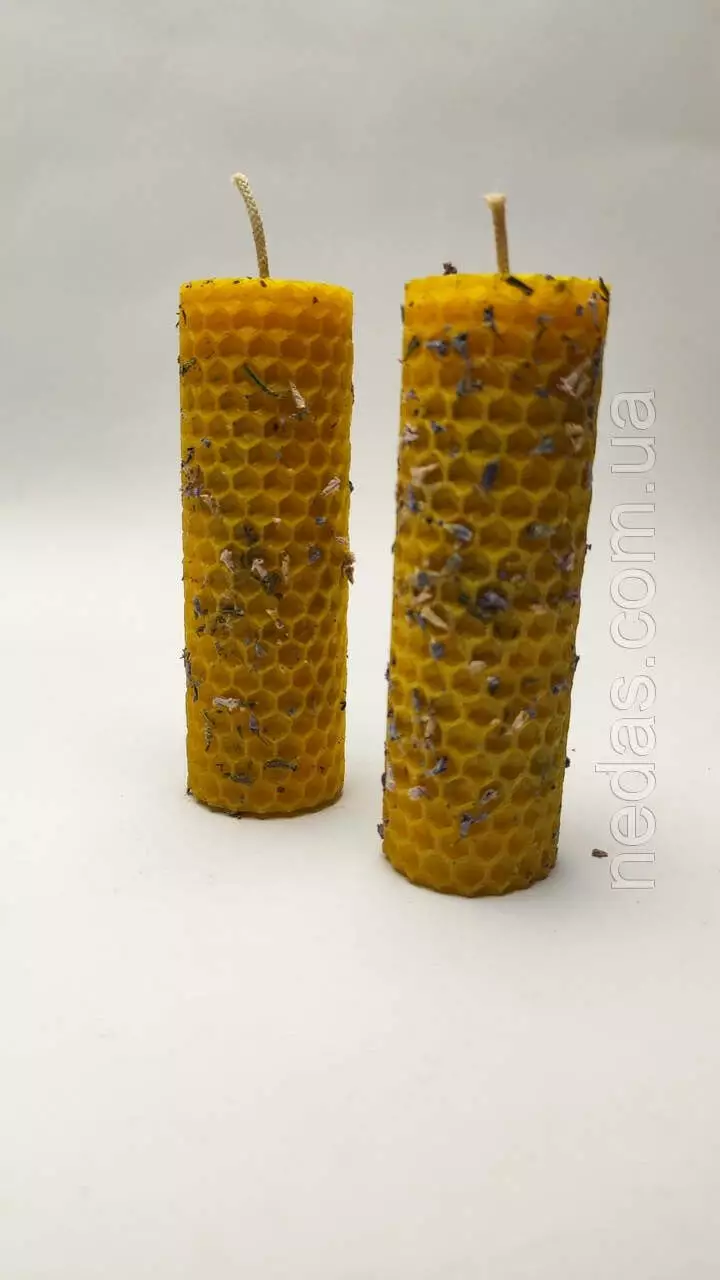 Свічка з натурального бджолиного воску з ароматними та травами.